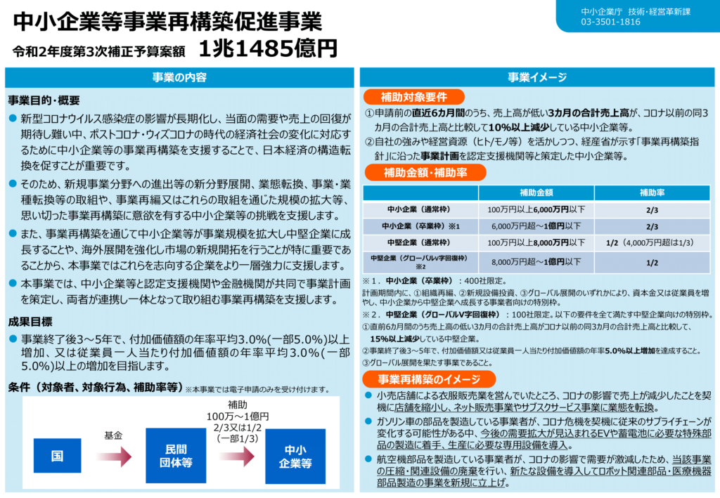 - 中小企業の事業再構築を支援を通して、経済の構造転換を促す