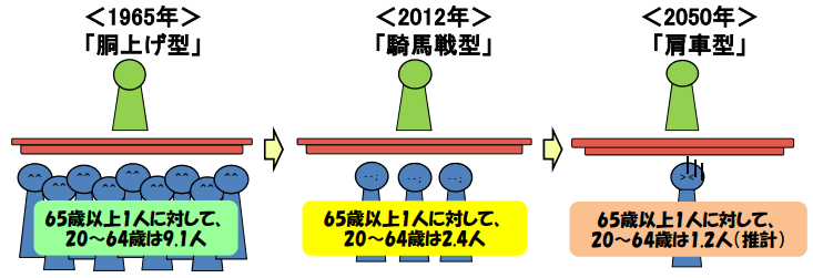 2012年「騎馬戦型」:65歳以上1人に対し、20~64歳は2.4人