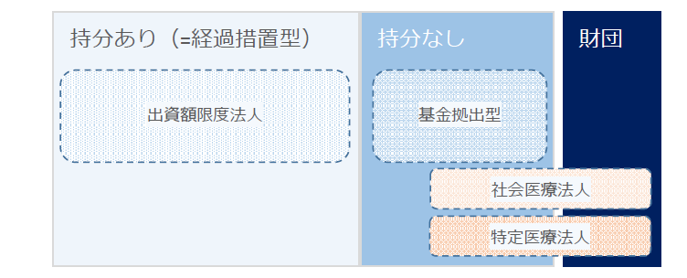 出資者が財産権を持ち、持分を相続や贈与で移転する必要がある。 - 出資持分なし