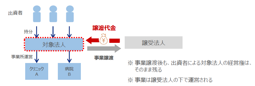 医療法人における「事業譲渡」とは、医療法人が経営する診療所、病院等の一部または全部を他の法人に承継させる方法を指します。