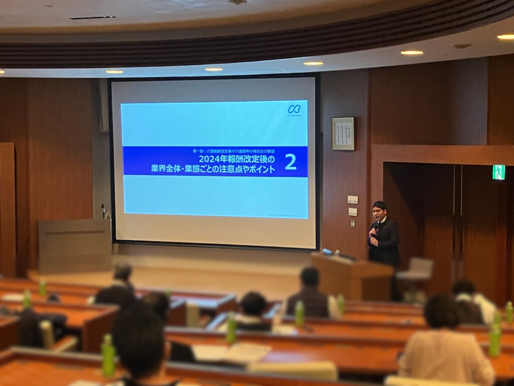 まず初めに令和6年度介護報酬改定の変更点やポイントをおさらいし、改定後の業界の変化について解説いたしました。