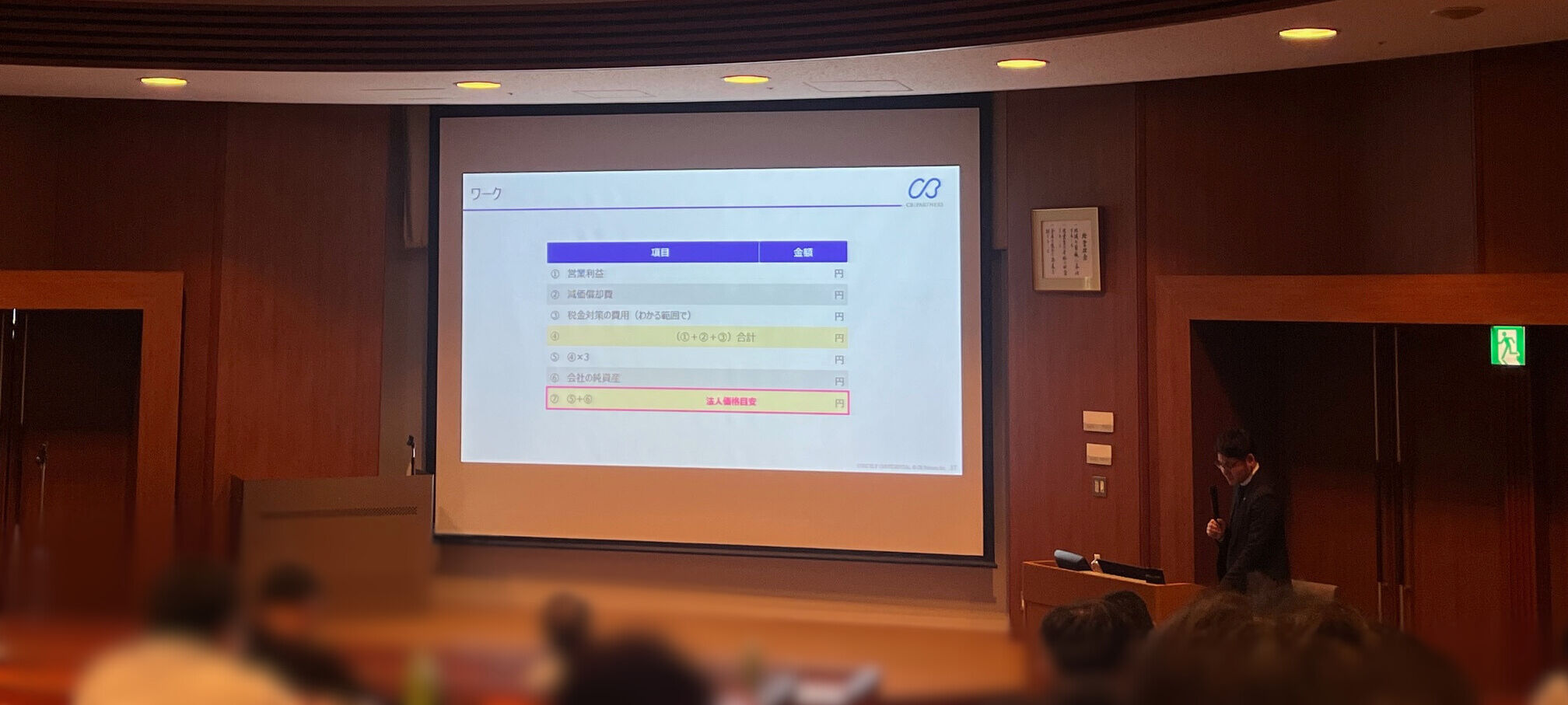 ご参加いただいた皆様に、自社の営業利益や減価償却費などを用いて、実際に法人価値の目安を算出していただくワークを設けました。