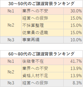 前回の調査で最も多いご譲渡背景であった「後継者不在」ですが、
