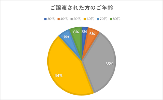 30代~50代が44%と比較的お若いオーナーのご譲渡が約半分を占めているという結果でした。