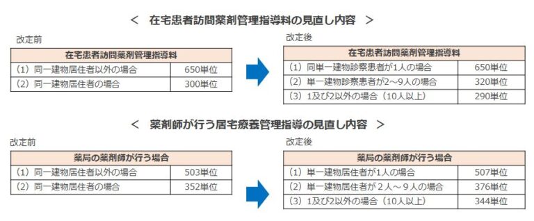 まず2018年度改定によって調剤薬局の在宅調剤への取り組みに関する評価指標は、実施先をさらに細分化されたことで、一定の効率を求めた、大規模入居施設だけに特化した在宅調剤への取り組み評価は下がり、実施内容の質を問われる評価指標に見直がかかりました。