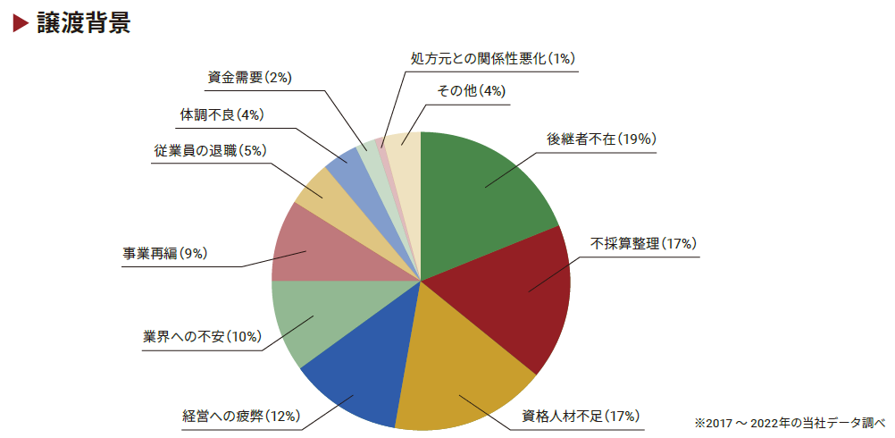 グラフの通り、第三者承継の中では後継者不在を原因とした割合が最も大きくなっています。