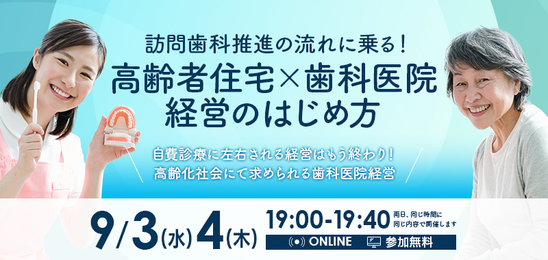 高齢者住宅を核に地域連携を図り、地域包括ケアシステムの構築を支援する株式会社CBリサーチ(本社:東京都港区、代表取締役:鎮目 努、以下 当社)は、2025年9月3日(水)・4日(木)19:00~19:40に、「訪問歯科診療」をキーワードに歯科クリニック経営に携わる方向けの無料オンラインセミナーを開催致します。