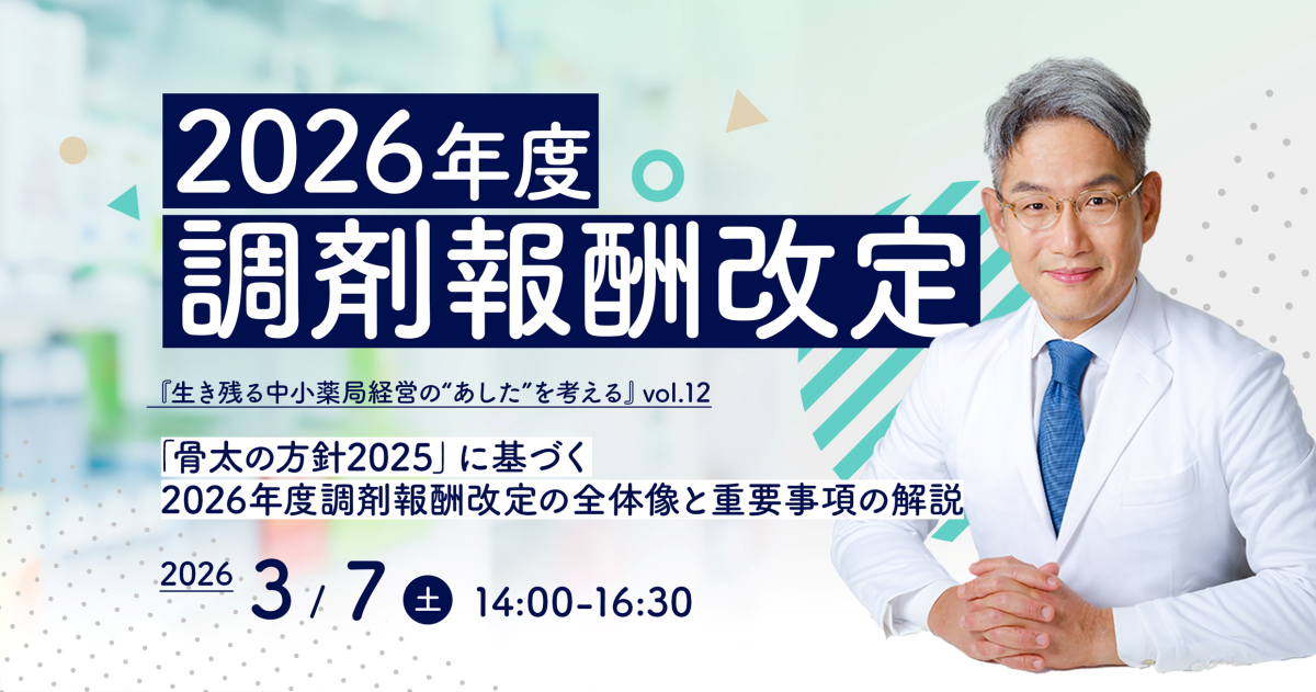 地域医療の一翼を担う薬局経営者様の今後の事業戦略の参考として、是非本セミナーをご活用ください。皆さまのご参加を心よりお待ちしております。
