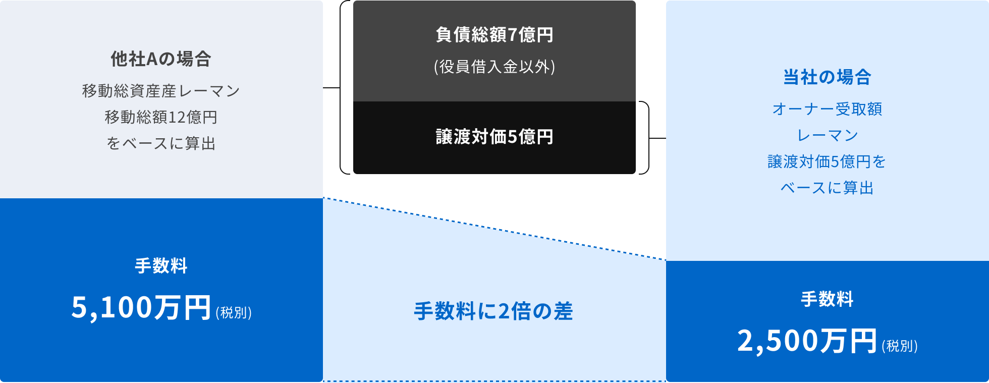 例)譲渡対価5億円、負債総額7億円の法人の場合